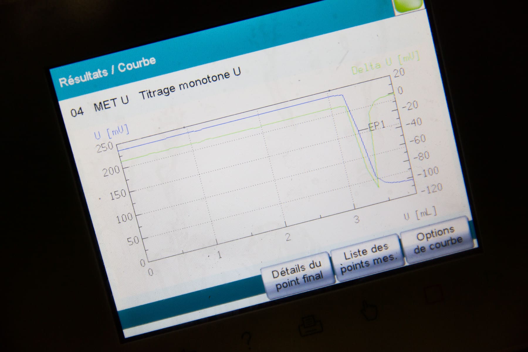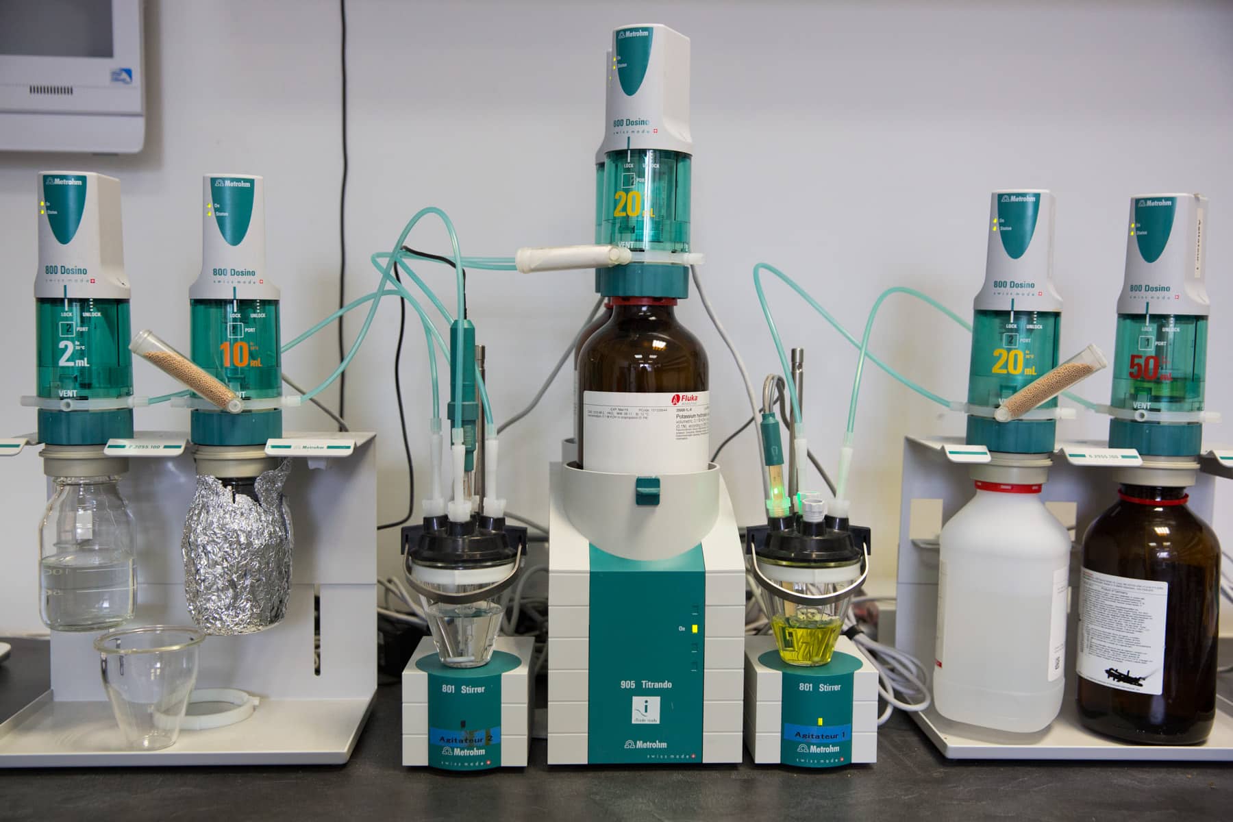 Méthode autonome pilotée par logiciel, issue des standards de l’industrie pharmaceutique, permettant de mesurer par titrage et chromatographie :